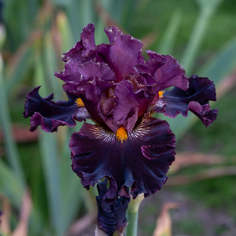 Light burgundy standards with deep burgundy falls. Mustard orange beard. Early to midseason bloom.
