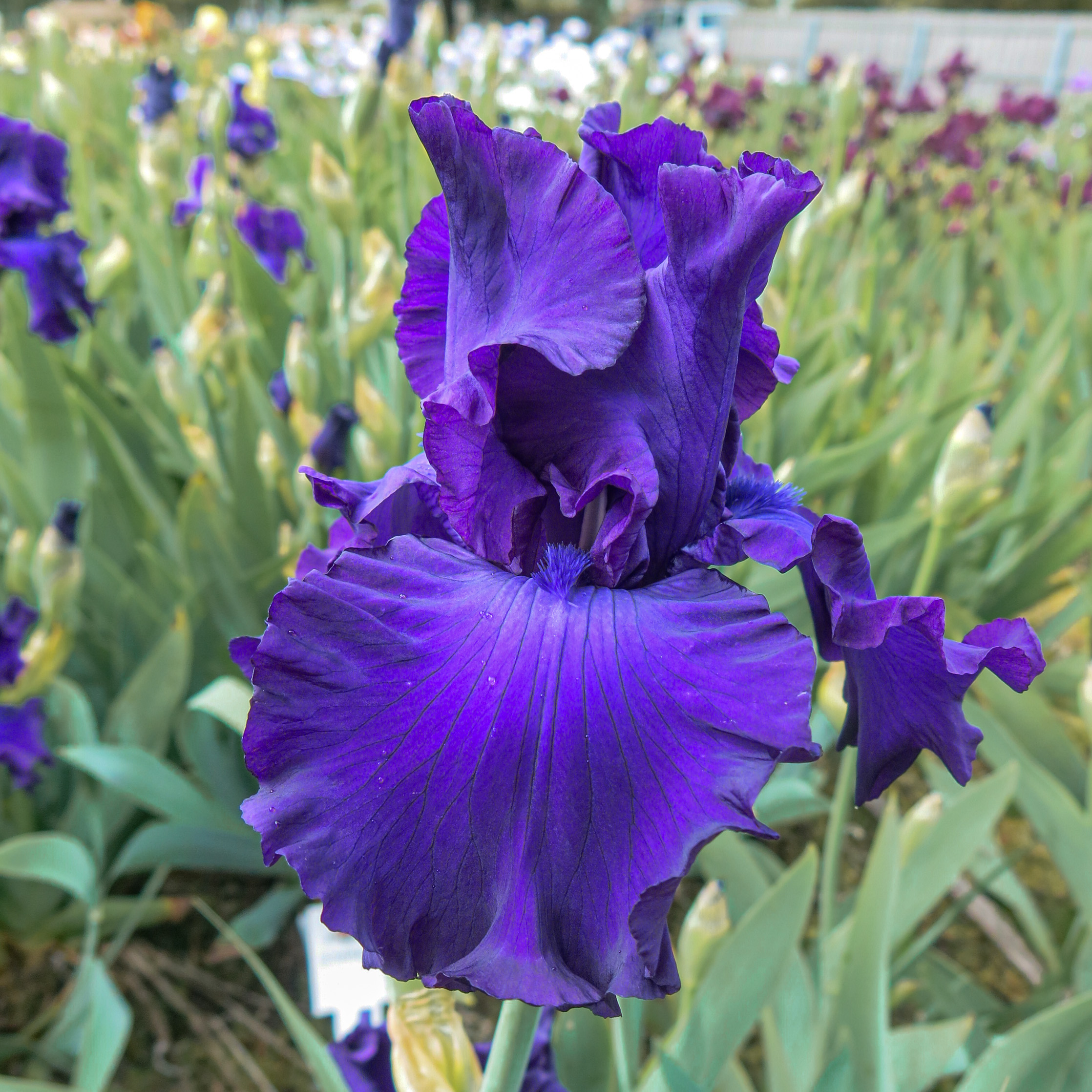 Deep royal self with dark purple beard. Ruffled mid-season bloom.